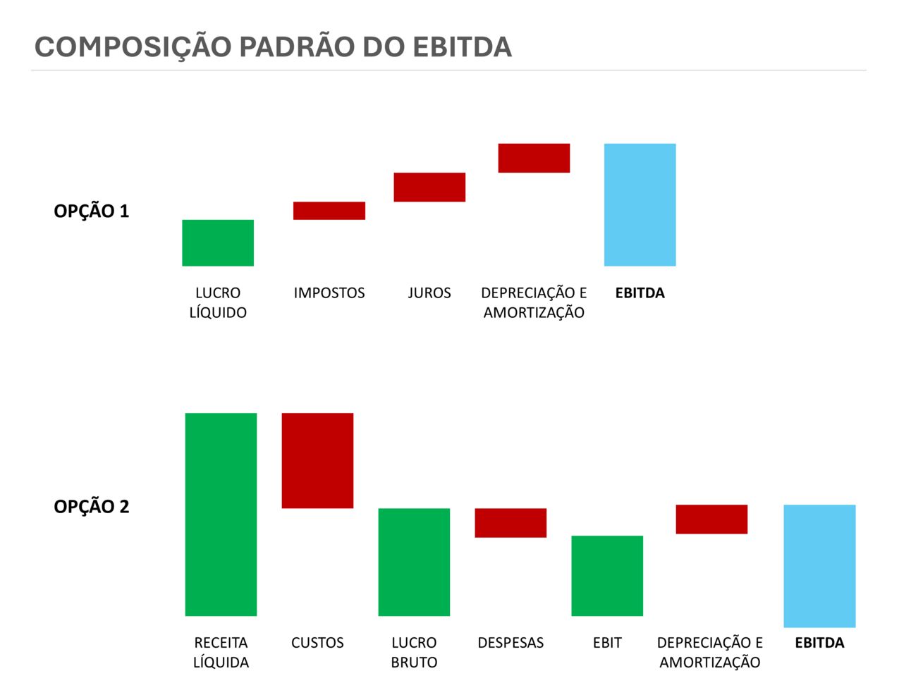 Note que, em ambos os casos, chegamos ao mesmo valor de EBITDA (R$ 92,917 milhões). Provando, portanto, a aplicabilidade do cálculo tanto pela opção 1 quanto pela 2.