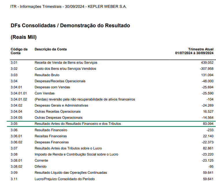 Abaixo, abordaremos como exemplo o cálculo do EBITDA do último resultado trimestral divulgado pela Kepler Weber, empresa que já abordamos em edições passadas.